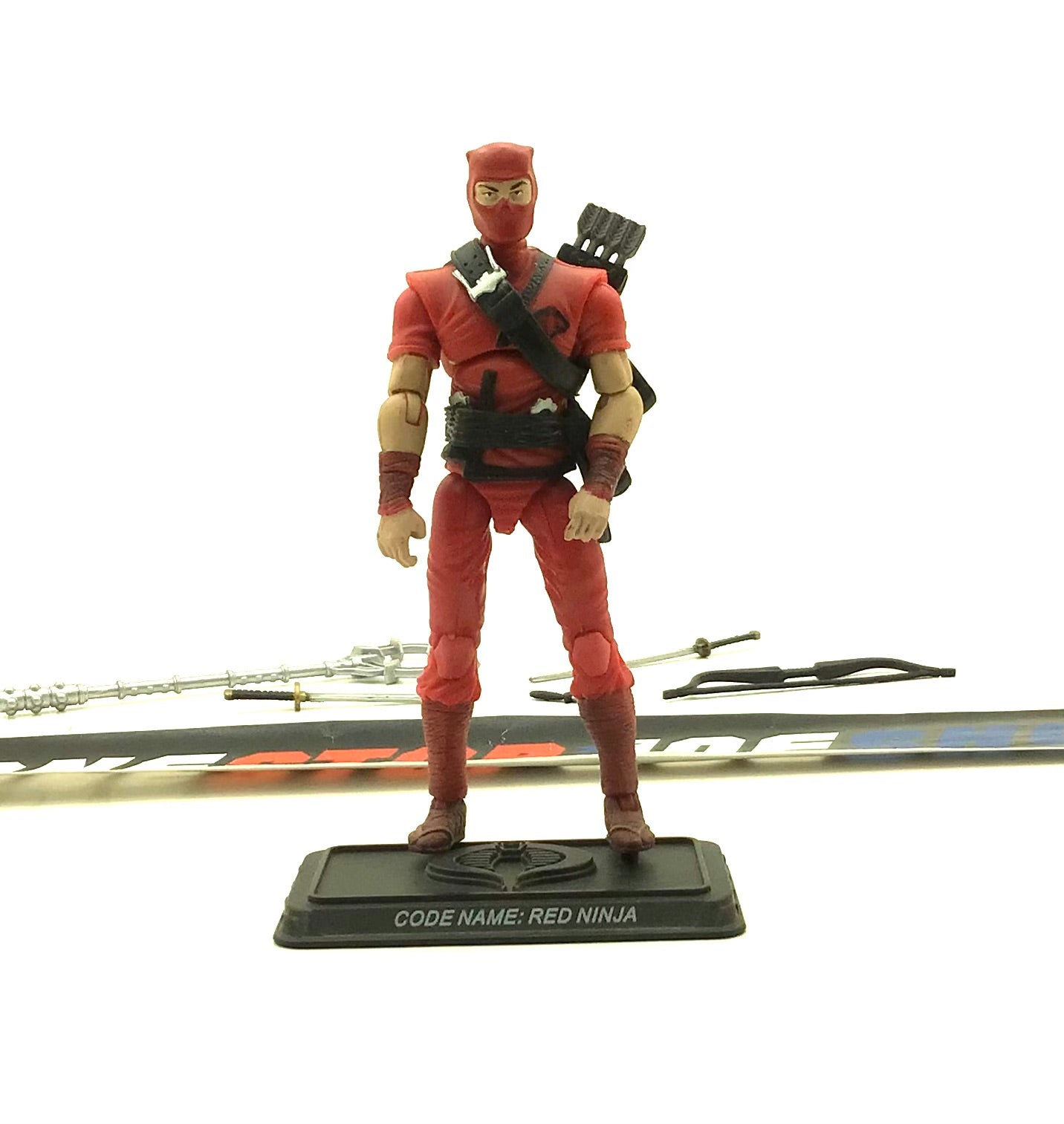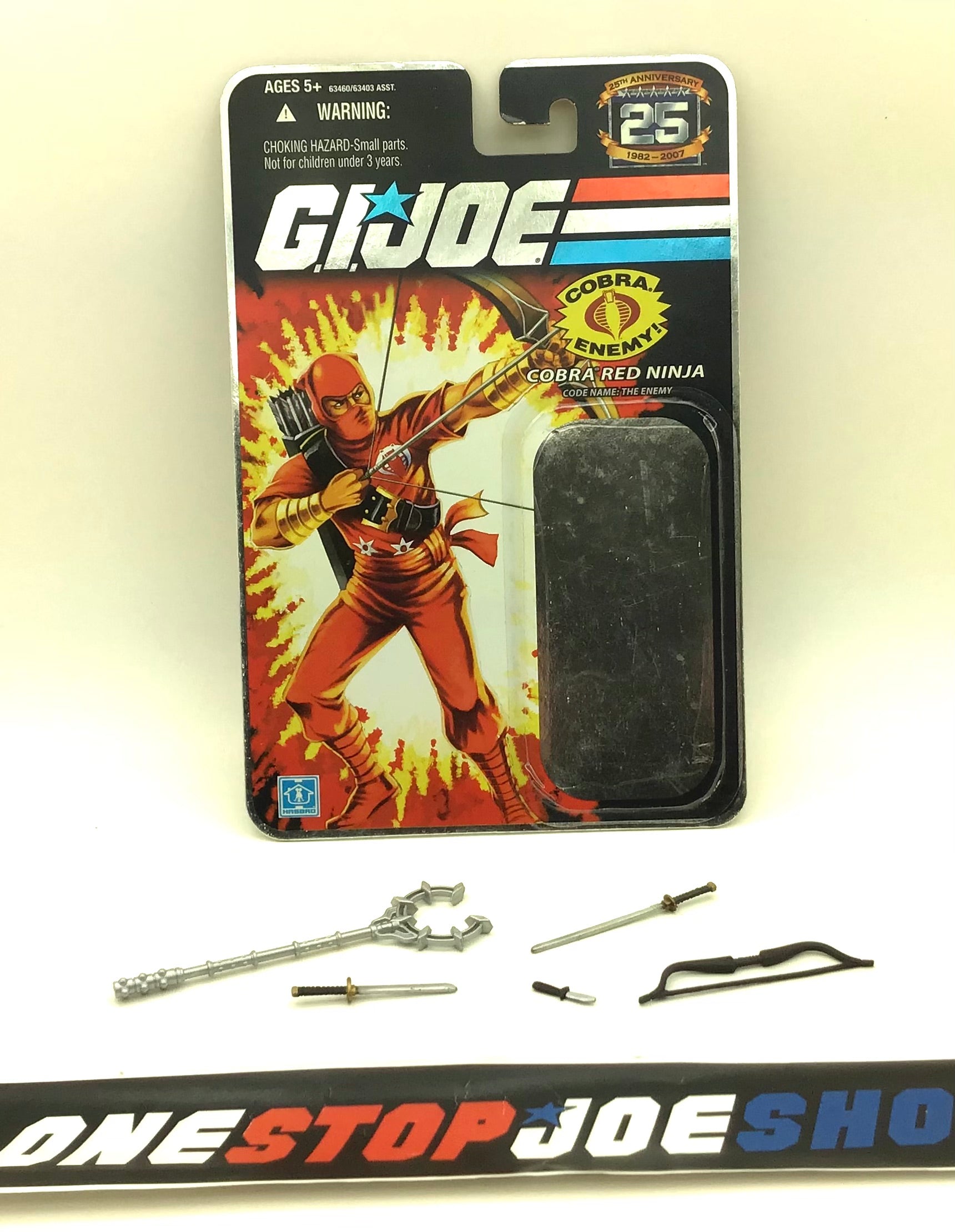 2007 25TH ANNIVERSARY G.I. JOE COBRA RED NINJA V2 WAVE 3 LOOSE 100% COMPLETE + FULL FOIL CARD