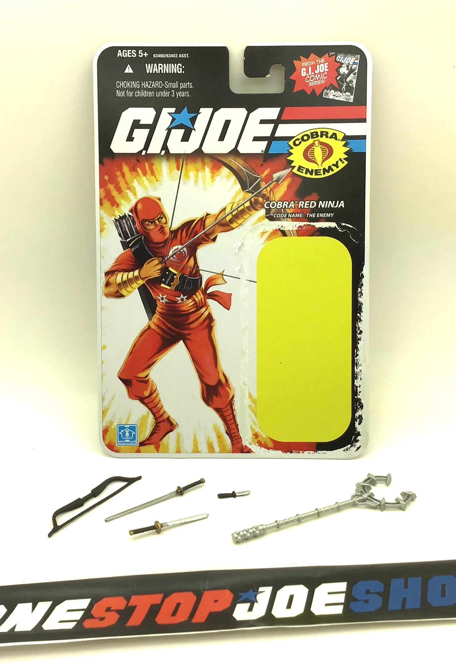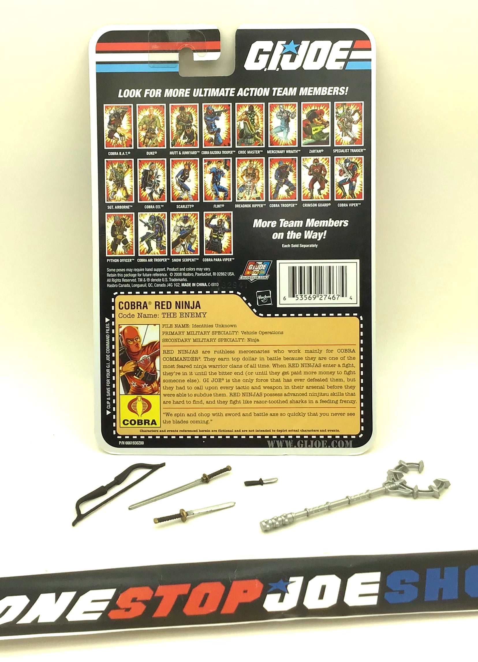 2007 25TH ANNIVERSARY G.I. JOE COBRA RED NINJA V2 WAVE 3 LOOSE 100% COMPLETE + FULL COMIC CARD