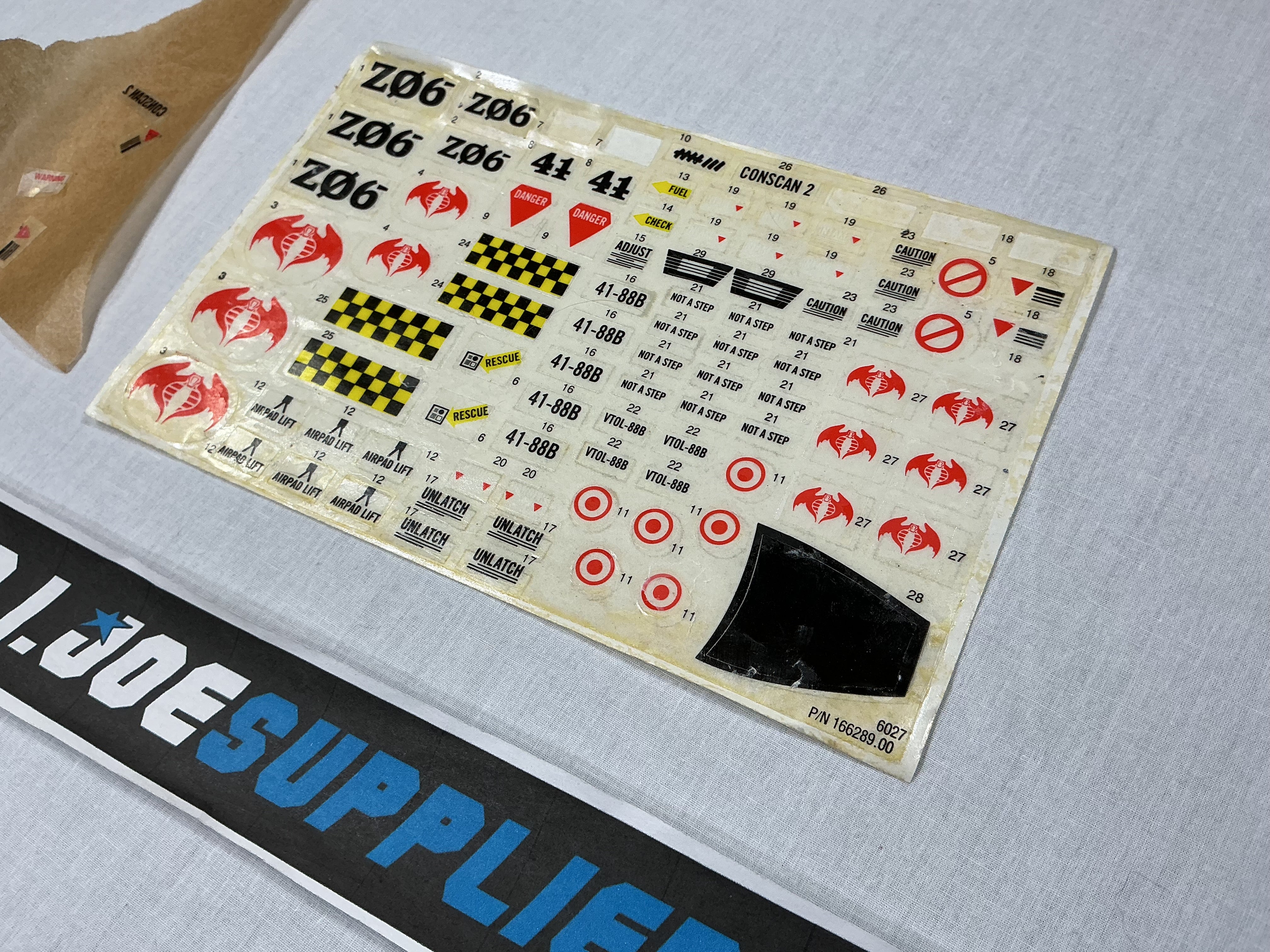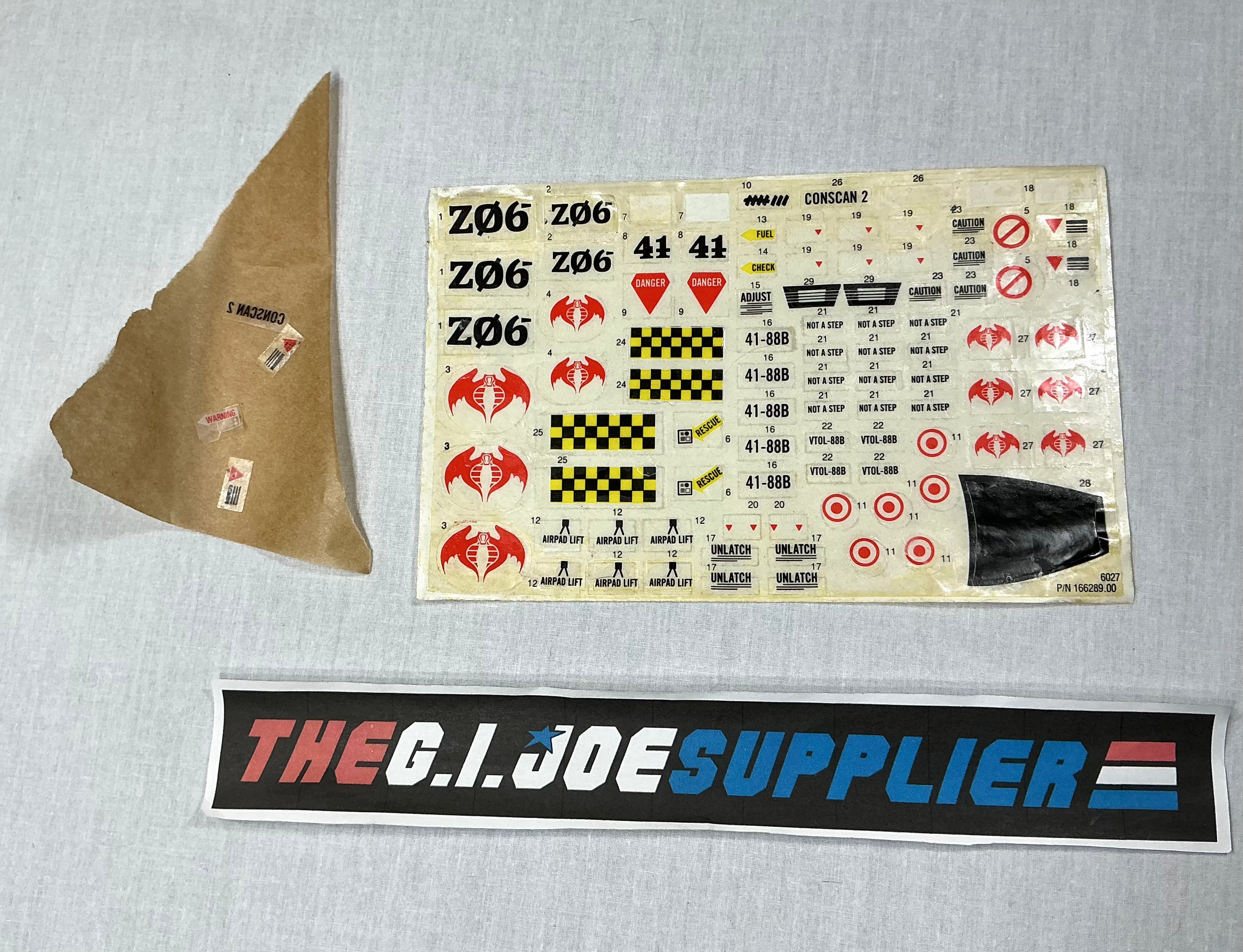 1984 VINTAGE ARAH G.I. JOE COBRA RATTLER A-10 JET VEHICLE ONLY LOOSE 100% COMPLETE UNUSED DECAL SHEET