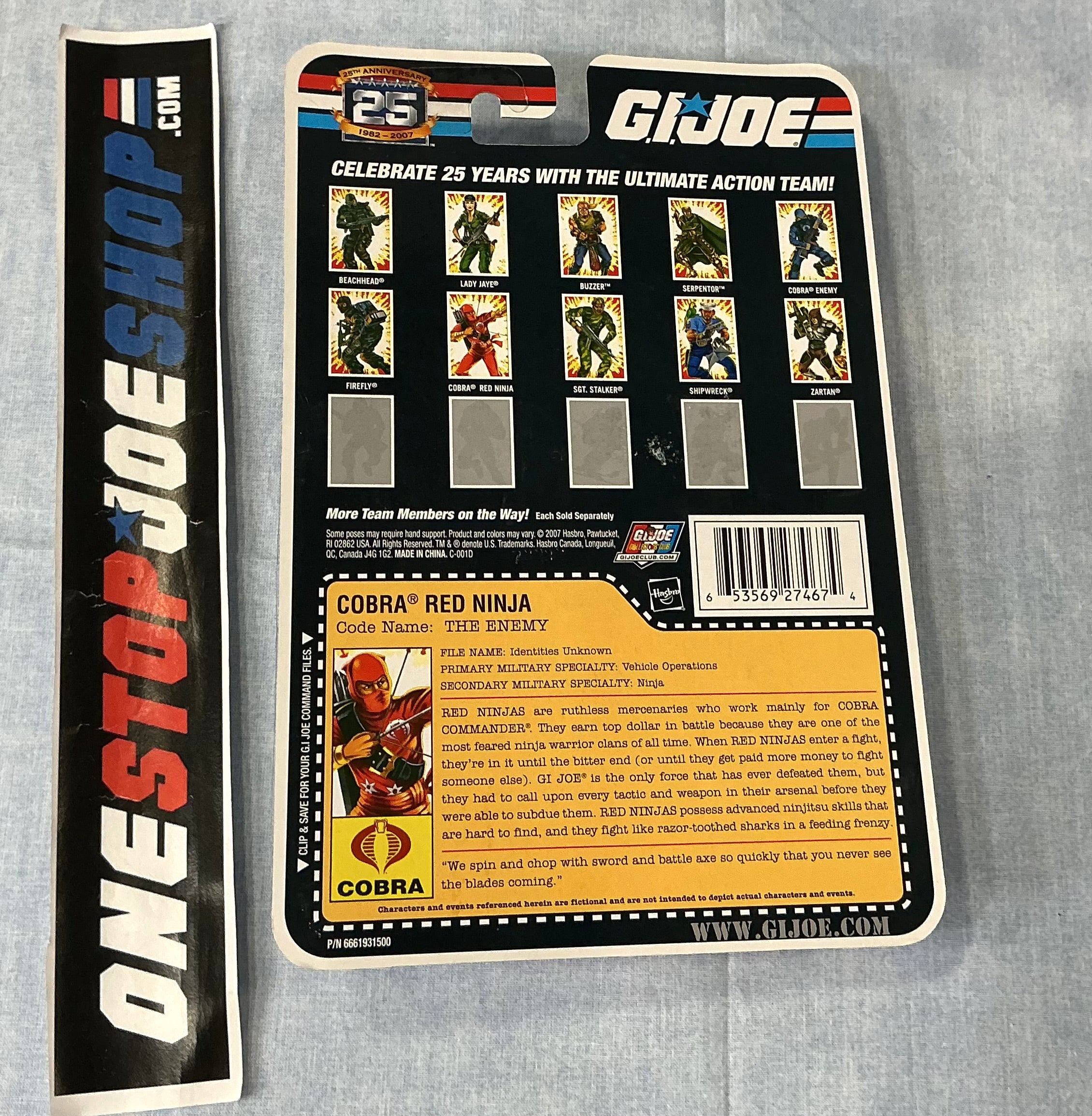 2007 25TH ANNIVERSARY G.I. JOE COBRA RED NINJA V2 WAVE 3 NEW SEALED FOIL CARD (c)