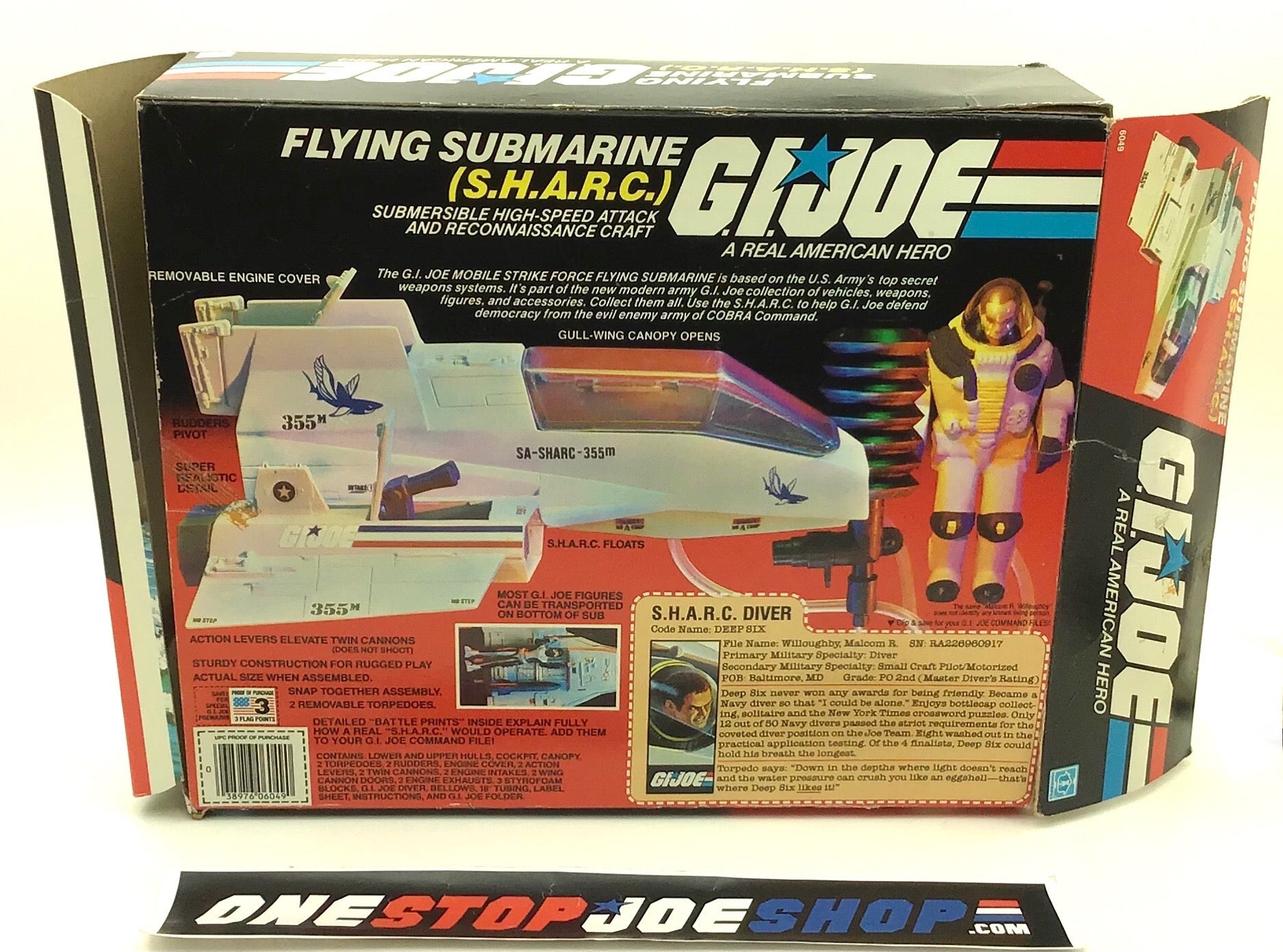 1984 VINTAGE ARAH G.I. JOE S.H.A.R.C. SHARC VEHICLE BOX ONLY W/ DEEP SIX FILE CARD (b)