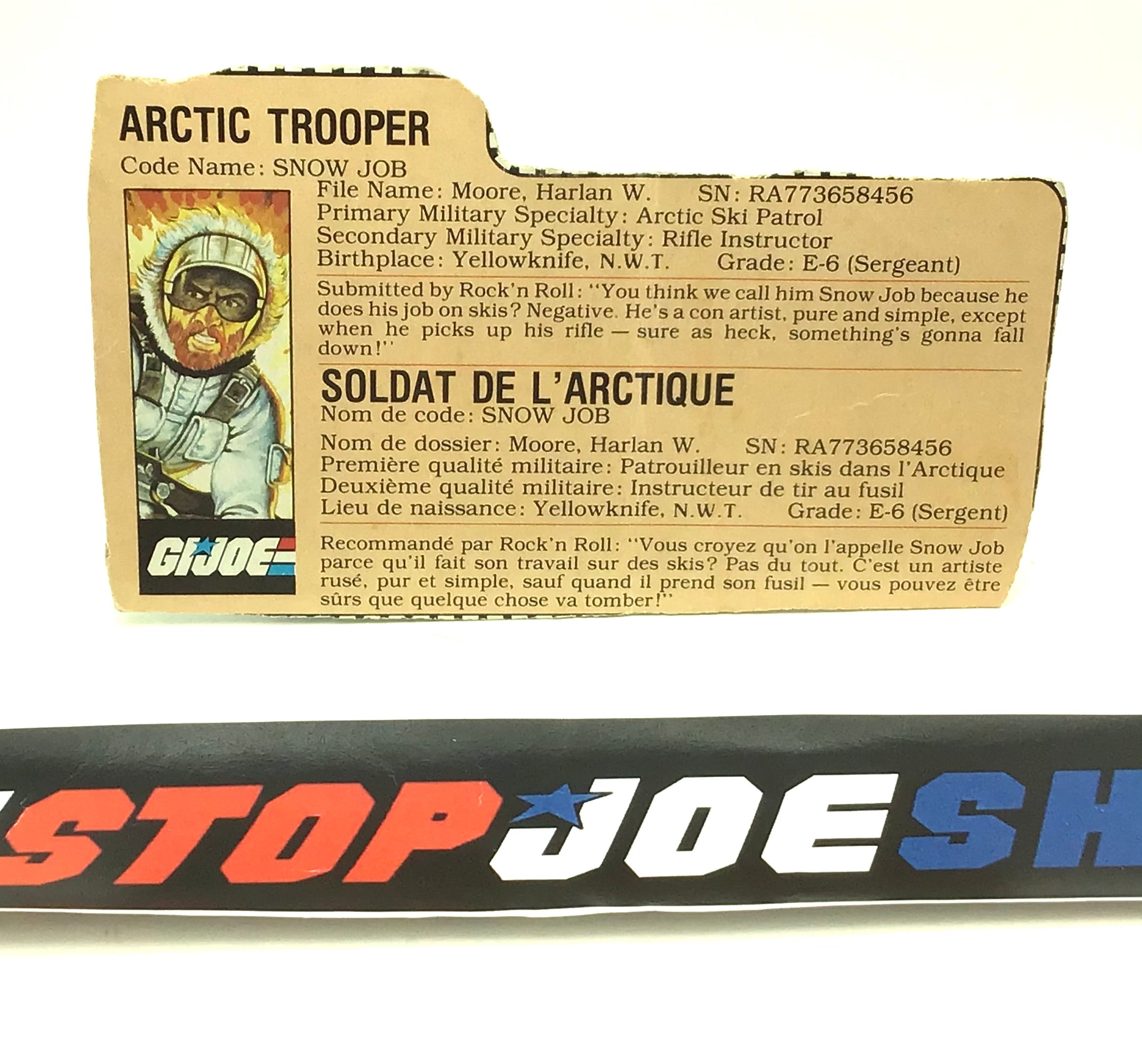 1983 VINTAGE ARAH G.I. JOE SNOW JOB V1 FRENCH CANADIAN FILE CARD