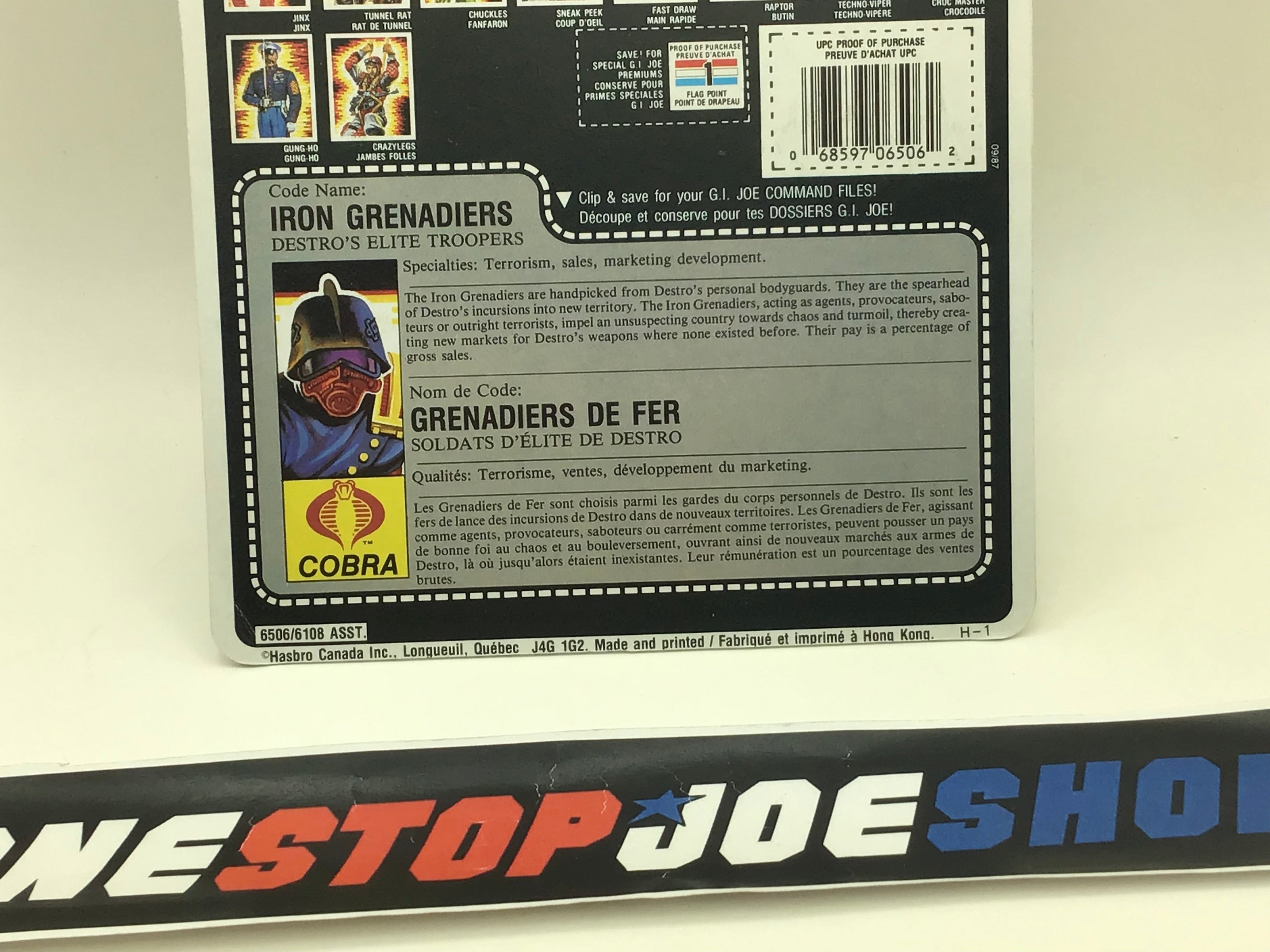 1988 VINTAGE ARAH IRON GRENADIERS V1 FRENCH CANADIAN FULL FILE CARD