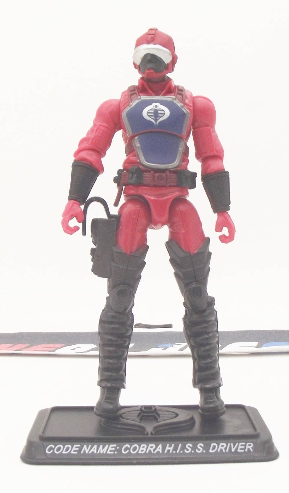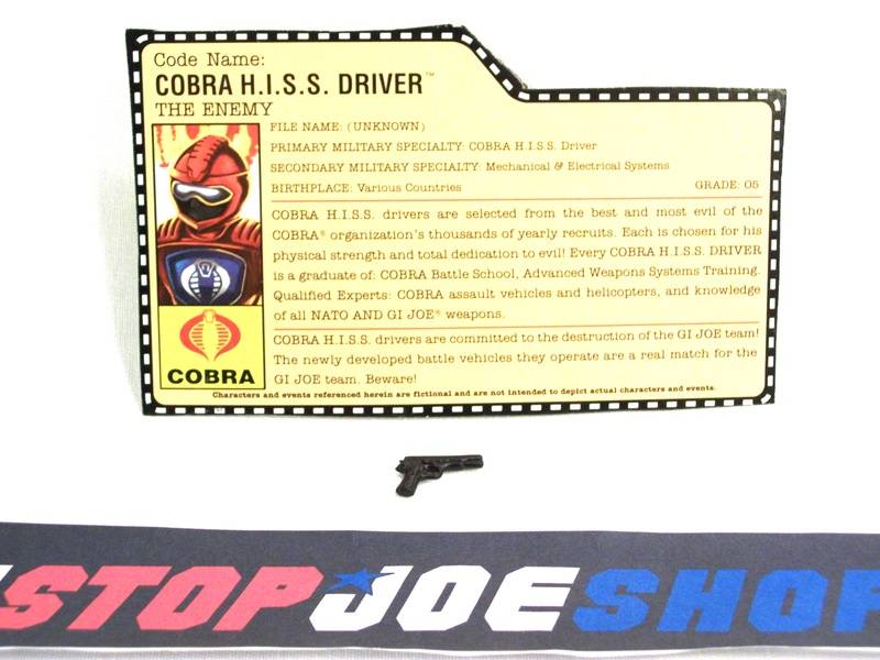 "COBRA H.I.S.S. DRIVERS ARE SELECTED FROM THE BEST AND MOST EVIL OF THE COBRA ORGANIZATION'S THOUSANDS OF YEARLY RECRUITS. EACH IS CHOOSEN FOR HIS PHYSICAL STRENGTH AND TOTAL DEDICATION TO EVIL! EVERY COBRA H.I.S.S. DRIVER IS A GRADUATE OF: COBRA BATTLE SCHOOL, ADVANCED WEAPONS SYSTEMS TRAINING. QUALIFIED EXPERTS: COBRA ASSAULT VEHICLES AND HELICOPTERS, AND KNOWLEDGE OF ALL NATO AND G.I. JOE WEAPONS."